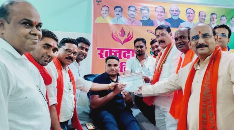 सेवा पखवाड़ा के अंतर्गत हरदीबाजार में आयोजित विधानसभा स्तरीय विशाल रक्तदान शिविर में शामिल हुये भाजपा जिलाध्यक्ष  गोपाल मोदी
