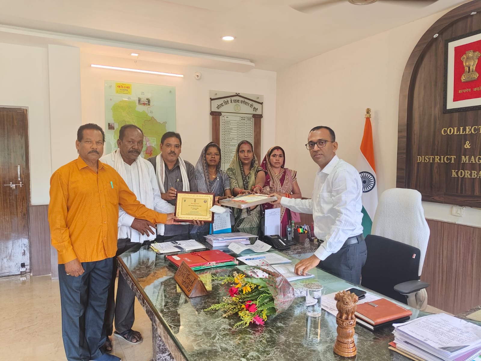 79वें स्वतंत्रता दिवस के अवसर पर भारत सरकार नई दिल्ली द्वारा कोरबा जिले के ग्राम पंचायत दोंदरों को जलसंरक्षण के क्षेत्र में उत्कृष्ट कार्य के लिए प्रमाण पत्र प्रदान किया गया है। नई दिल्ली में सम्मान प्राप्त करने के पश्चात जनपद पंचायत कोरबा सीईओ ने जनपद अध्यक्ष श्रीमती बीजमोती राठिया, जनपद सदस्य क्षेत्र क्र. 06 श्रीमती ललिता बलराम साहू, पूर्व जनपद सदस्य कौशल प्रसाद पटेल, ग्राम पंचायत दोंदरो सरपंच बंधन सिंह कंवर व पूर्व सरपंच श्रीमति उदमबाई कंवर व दोंदरो उपसरपंच श्रीमती प्रमिला मनहरण पटेल सहित अन्य ने कलेक्टर अजीत वसंत से मुलाकात की और जल शक्ति मंत्रालय भारत सरकार द्वारा जल जीवन मिशन के उत्कृष्ट कार्य के लिए दिये गये प्रमाण पत्र के संबंध में विस्तार से जानकारी दी। कलेक्टर श्री वसंत ने सभी को बधाई देते हुए कार्यों की प्रशंसा की और शुभकामनाएं दी।