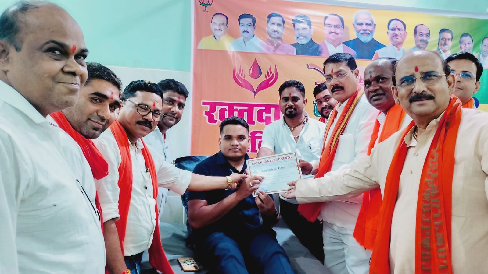 सेवा पखवाड़ा के अंतर्गत हरदीबाजार में आयोजित विधानसभा स्तरीय विशाल रक्तदान शिविर में शामिल हुये भाजपा जिलाध्यक्ष गोपाल मोदी और कटघोरा विधायक श्री प्रेमचंद पटेल।