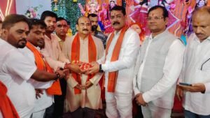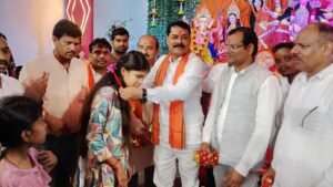 *हरदी बाजार के दुर्गा पंडाल पहुंचे भाजपा जिला अध्यक्ष गोपाल मोदी माता रानी को किया नमन, प्रतिभागी बच्चियों को किया सम्मानित*