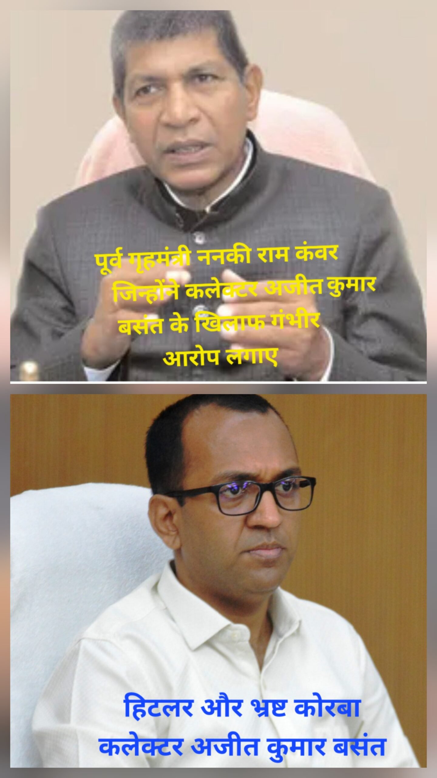 *पूर्व गृहमंत्री ननकी राम कंवर की शिकायत के बाद छत्तीसगढ़ शासन सामान्य प्रशासन विभाग मंत्रालय महानदी भवन नया रायपुर अटल नगर से दिनांक 21,9, 2025 को बिलासपुर संभाग आयुक्त को कलेक्टर कोरबा अजीत कुमार वसंत के खिलाफ जांच करने के लिए पत्र जारी किया गया है क्या निष्पक्ष जांच होगी यह सवाल हमेशा से उठाते रहेंगे क्योंकि वर्तमान में कलेक्टर के पद में पदस्थ है*