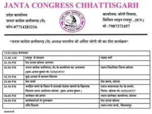 जनता कांग्रेस छत्तीसगढ़ (जे) के प्रदेश अध्यक्ष अमित जोगी आगामी 13 जनवरी (मंगलवार) को ऊर्जा धानी कोरबा के प्रवास पर रहेंगे। अपने इस एक दिवसीय दौरे के दौरान वे पार्टी संगठन को मजबूती देने के साथ-साथ जनहित के मुद्दों को लेकर प्रदेश की बड़ी औद्योगिक कंपनी बालको (वेदांता) के खिलाफ मोर्चा खोलेंगे। अमित जोगी 13 जनवरी को दोपहर 1:30 बजे सड़क मार्ग से कोरबा पहुंचेंगे। दोपहर 2:00 बजे वे कोरबा के निहारिका क्षेत्र में जनता कांग्रेस छत्तीसगढ़ (जे) के नए जिला कार्यालय का उद्घाटन करेंगे। पार्टी के स्थानीय नेता अजय कुमार के नेतृत्व में इस कार्यक्रम की तैयारियां जोरों पर की जा रही हैं। कार्यालय उद्घाटन के माध्यम से पार्टी जिले में अपनी सक्रियता बढ़ाने की रणनीति बना रही है।