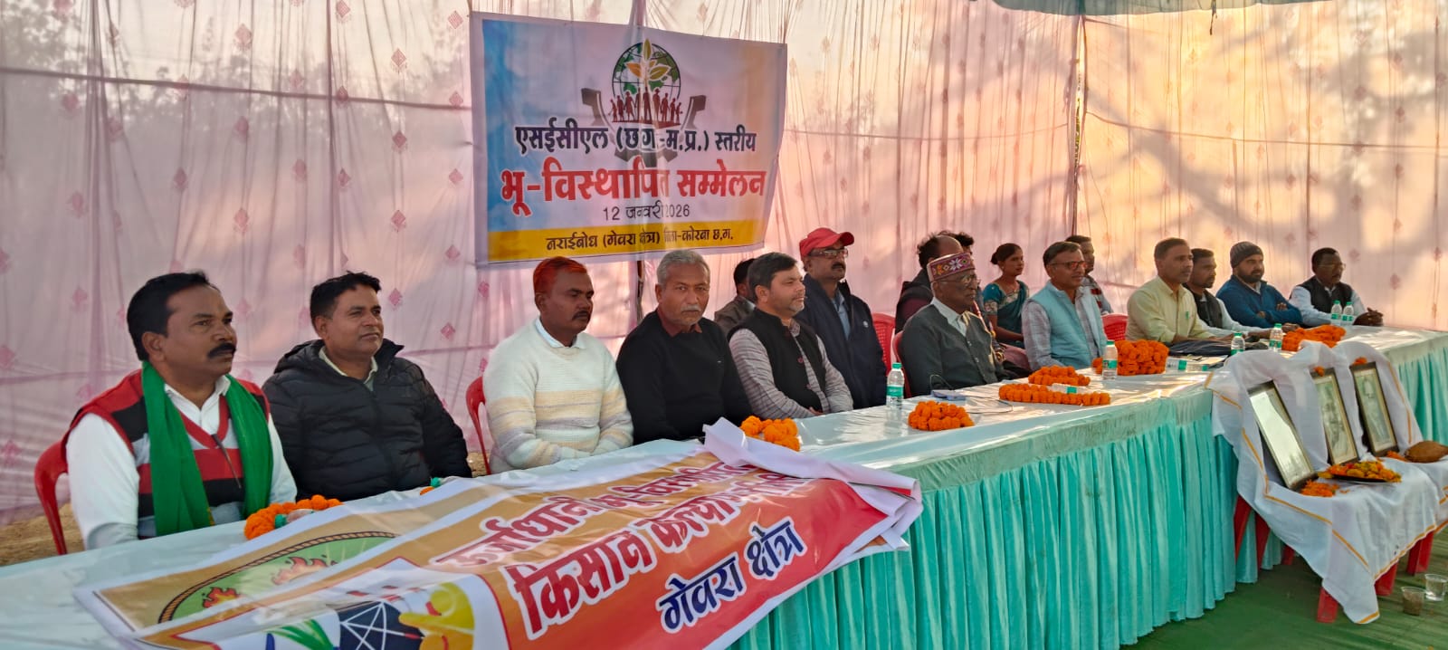 साउथ ईस्टर्न कोलफील्ड्स लिमिटेड (SECL) के अंतर्गत आने वाले छत्तीसगढ़ और मध्य प्रदेश के विभिन्न क्षेत्रों के भूविस्थापितों की एसईसीएल स्तरीय सम्मेलन का आयोजन किया गया कार्यक्रम की शुरआत में महापुरुषों के छायाचित्र पर पुष्पांजलि अर्पित की गई स्कूली छात्राओं ने स्वागत गीत प्रस्तुत किया और रुद्र दास ने स्वागत उद्बोधन किया उसके बाद ऊर्जाधानी भूविस्थापित किसान कल्याण समिति के अध्यक्ष सपुरन कुलदीप ने कोयला खदानों के इतिहास और वर्तमान परिस्थिति पर विस्तार से रिपोर्ट प्रस्तुत किया और आयोजन के सबन्ध में बताया ।