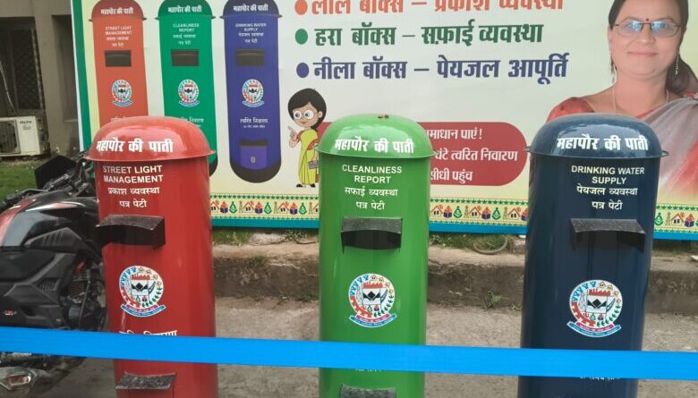 ’’ मेयर की पाती ’’ व्यवस्था के अंतर्गत नगर पालिक निगम कोरबा के मुख्य प्रशासनिक भवन साकेत के प्रवेशद्वार पर लाल, हरा, नीला तीन रंगों के लेटर बाक्स स्थापित किये गये हैं, जिसमें लाल रंग के लेटर बाक्स में स्ट्रीट लाईट, हरे रंग के लेटर बाक्स में साफ-सफाई तथा नीले रंग के लेटर बाक्स में पेयजल से जुड़ी समस्याओं के आवेदन डाले जा रहे हैं।