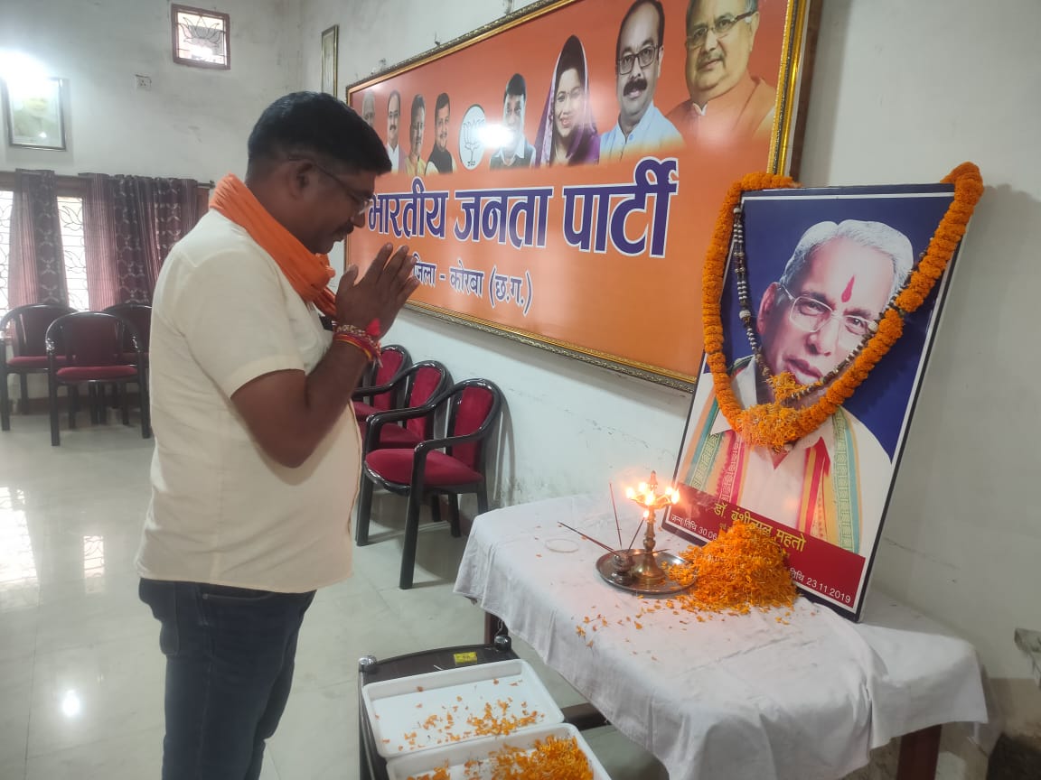 भारतीय जनता पार्टी के वरिष्ठ नेतृत्वकर्ता, सुविख्यात चिकित्सा विद एवं कोरबा लोकसभा से पूर्व सांसद रहे स्वर्गीय डॉक्टर बंसीलाल महतो की चतुर्थ पुण्यतिथि पर कार्यकर्ताओं ने उन्हें नमन करते हुए अपने श्रद्धा सुमन अर्पित किए ।
